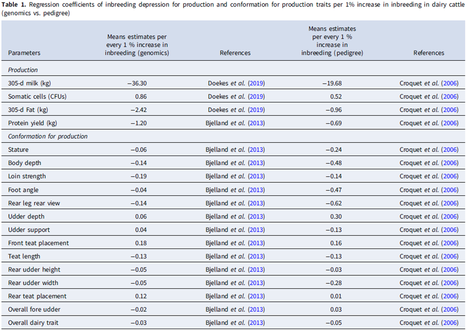 M.A. Gutierrez-Reinoso, P.M. Aponte, M. Garcia-Herreros, 2022. A review of inbreeding depression in dairy cattle: current status, emerging control strategies and future prospects. Journal of dairy Research 89, 3-12.